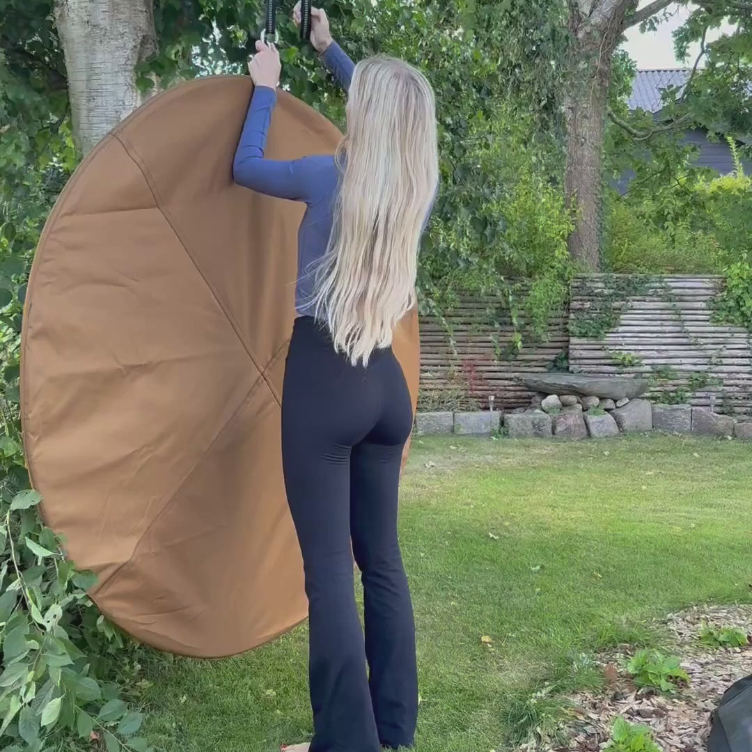Pro-modellen har samme stærke specifikationer som vores standardversion: 150 cm i diameter med god plads til op til 3 personer, slidstærkt og vandafvisende nylon, en letvægtskonstruktion på kun 2,8 kg og nem opsætning med stropper og karabinhager. Vi har udviklet Pro-versionen til dig, der vil have lidt ekstra komfort, frihed og beskyttelse – uanset om du skal på festival, i skoven eller bare vil slappe af i baghaven. Du kan læse mere og bestille direkte på nordic-gear.dk.